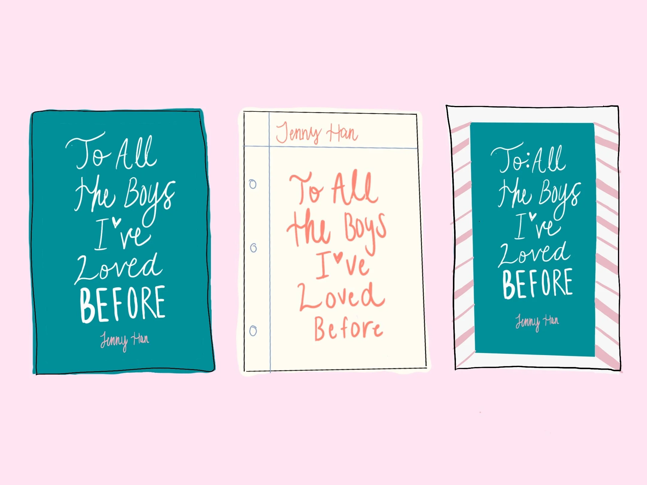 For my recreation of the banned book cover To All the Boys I’ve Loved Before, I wanted to visually capture the quiet vulnerability and emotional intimacy at the heart of the story. I drew from the soft, dreamy aesthetic of the movie, particularly the pastel tones that define Lara Jean’s world—like the pale teal of her bedroom walls and the soft pinks found in her bedding, decor, and stationery. These colors aren’t just pretty; they reflect her introspective, romantic nature and the safe, personal space where much of the story unfolds. To reinforce the deeply personal act of letter writing central to the plot, I incorporated handwritten-style typography, evoking the feel of a journal or note passed in secret. My goal was to design a cover that feels as heartfelt and genuine as the letters Lara Jean never meant to send—something intimate, nostalgic, and emotionally resonant.